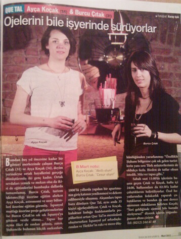 İlk aylarımızda Hürriyet, Sabah, Posta, Milliiyet derken her hafta sonu bir gazete de veya dergide kendimizi okuyorduk. 3. ayımızda Vouge Türkiye röportaja gelmişti. Sonrası zaten çorap söküğü gibi geldi Time Out Yeme İçme Ödülü, Tv çekimleri vs.